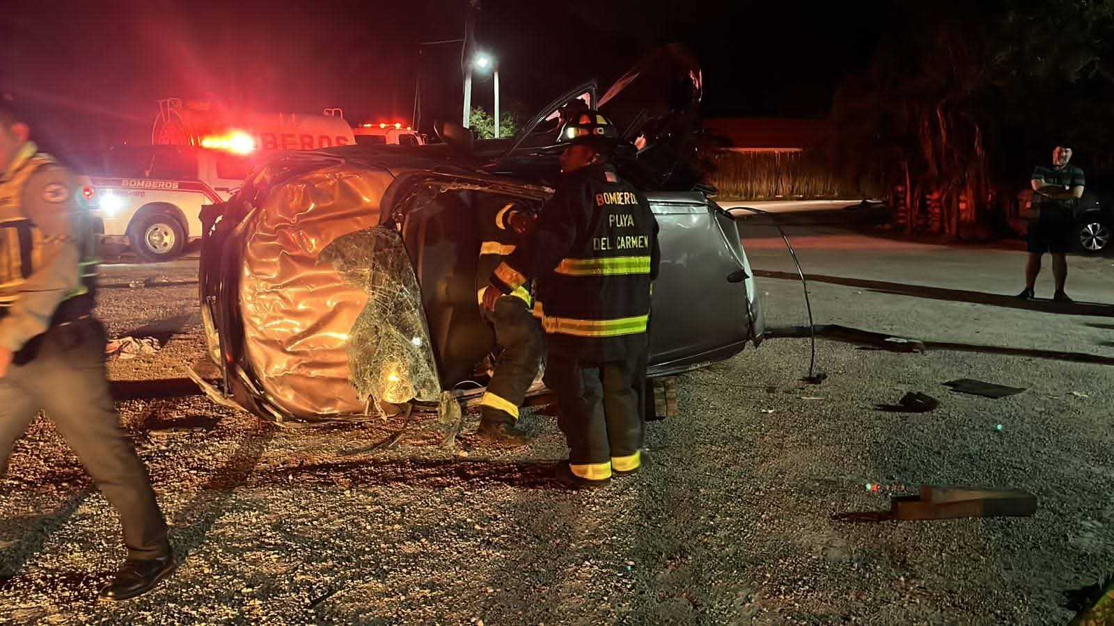 PLAYA DEL CARMEN, Quintana Roo, 13 de noviembre de 2025.— Cuatro personas, entre ellas dos menores de edad, fueron auxiliadas por elementos del Heroico Cuerpo de Bomberos luego de la volcadura de un automóvil en la carretera federal 307, a la altura de Paamul. El incidente, ocurrido la noche del jueves, movilizó a los equipos de emergencia, que lograron una respuesta rápida y coordinada.
