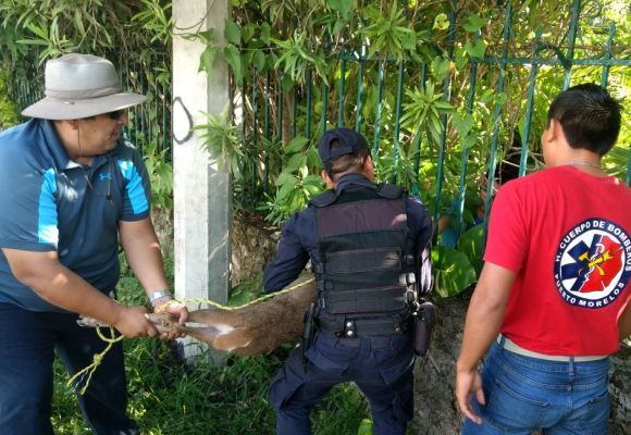PUERTO MORELOS, Quintan Roo, 16 de octubre.- La mañana de este lunes elementos de Seguridad Pública y bomberos de Puerto Morelos lograron el rescate de un venado cerca de Bajhía Petempich.