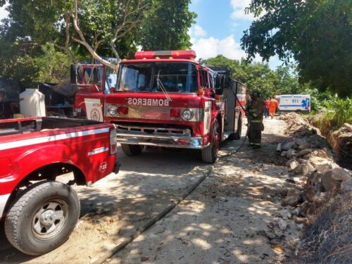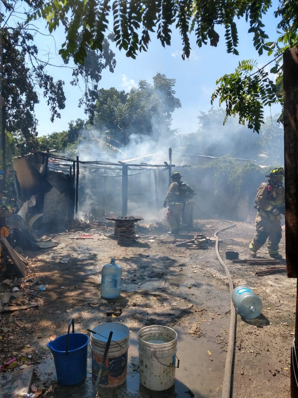 Para sofocar el incendio en la palapa de aproximadamente ocho metros cuadrados, los bomberos necesitaron 8 mil litros de agua.