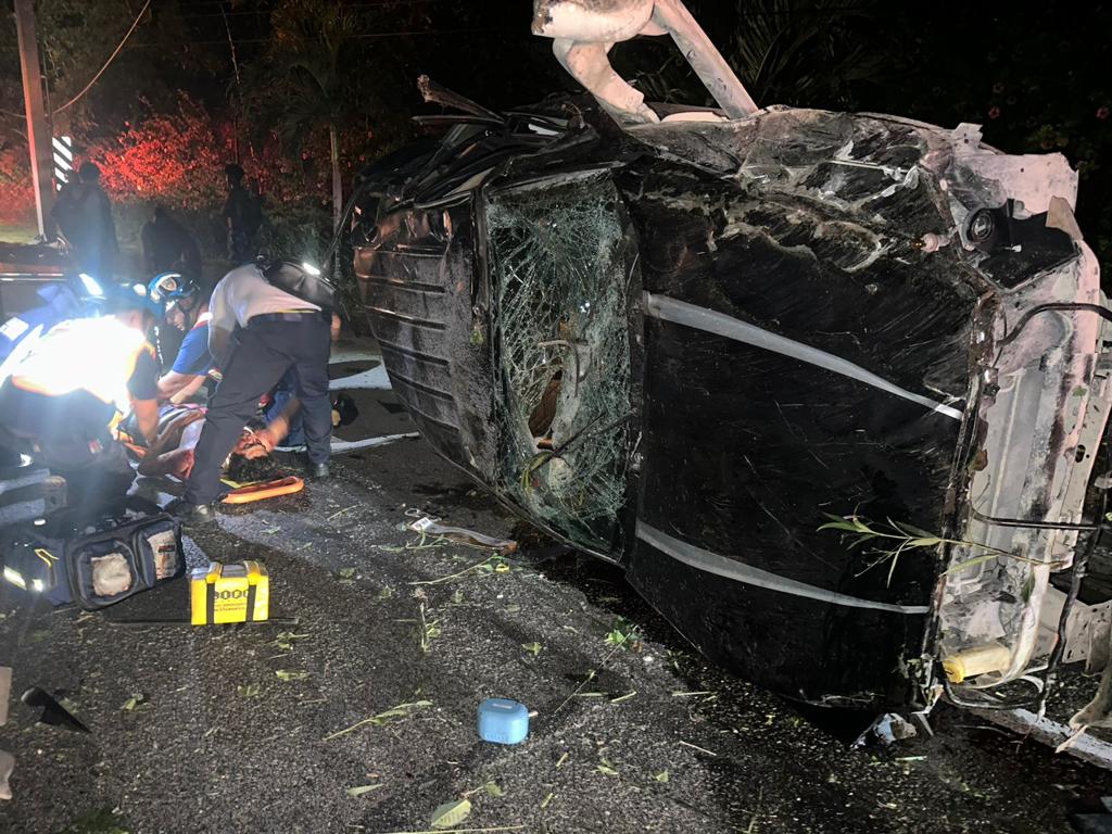 Alrededor de la medianoche automovilistas que circulaban cerca del retorno que se encuentra frente a este hotel, comenzaron a reportar a través de grupos de emergencia que una camioneta Dodge Ram color negro placas VN 3297 B, se había impactado contra un poste y posteriormente se volcó.