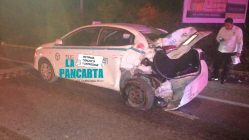 PLAYA DEL CARMEN, Quintana Roo, 01 de enero.- Sin vida terminó una pasajera que viajaba abordo de un taxi del sindicato Lázaro Cárdenas del río, al quedar prensada en la parte trasera del automóvil al ser impactado de lleno por una camioneta de lujo porque el conductor conducía a exceso de velocidad y en estado de ebriedad.