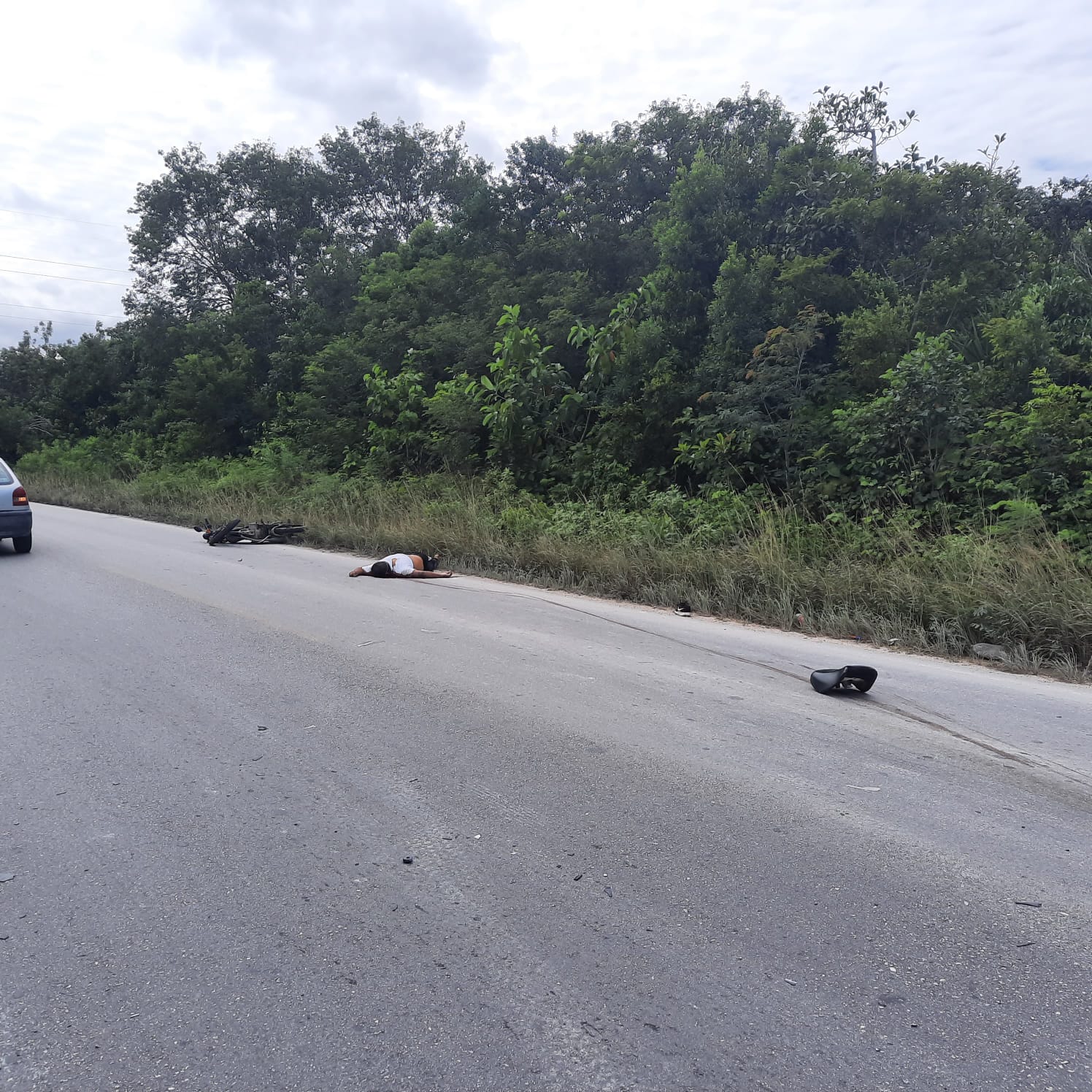 CANCÚN, Quintana Roo, 15 de noviembre. – Trágica muerte sufrió un motociclista tras ser atropellado por un auto alrededor de las 13:15 horas en la carretera Gas Auto a aproximadamente un kilómetro la avenida López Portillo y cuatro kilómetros del libramiento a la autopista.