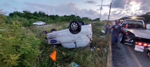 Borrachos abandonan la unidad que volcaron en la carretera 307