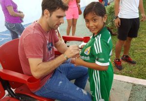 PLAYA DEL CARMEN, Quintana Roo, 9 de Diciembre. Ángel Villegas.- Gran sorpresa se llevaron los chicos de la Escuela Infantil de Futbol del Inter Playa del Carmen, al percatarse de la presencia de Mauro Boselli, delantero argentino naturalizado mexicano, integrante de los Esmeraldas del León.