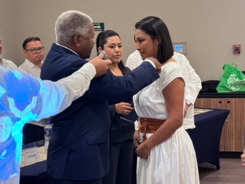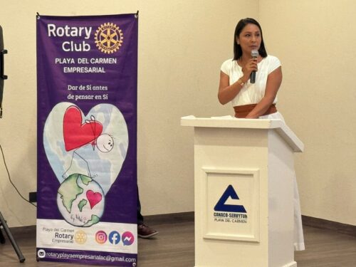 PLAYA DEL CARMEN, Quintana, Roo, 31 de agosto de 2025.—Con un emotivo mensaje de compromiso social, Brenda Santiago Vargas tomó protesta como presidenta del Club Rotario Playa del Carmen Empresarial para el año rotario 2025-2026, en el marco de una ceremonia que reunió a representantes del sector empresarial, educativo, asociaciones civiles y autoridades locales.