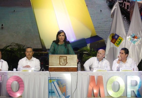 PUERTO MORELOS, Quintana Roo, 6 de enero de 2018.- Puerto Morelos es un municipio que brilla con luz propia, que ha cambiado su rostro con obras de infraestructura que mejoran la calidad de vida de sus habitantes, dijo la presidenta municipal Laura Fernández Piña, en el marco de la VI Sesión Pública y Solemne de Cabildo por el segundo aniversario de la creación del municipio.