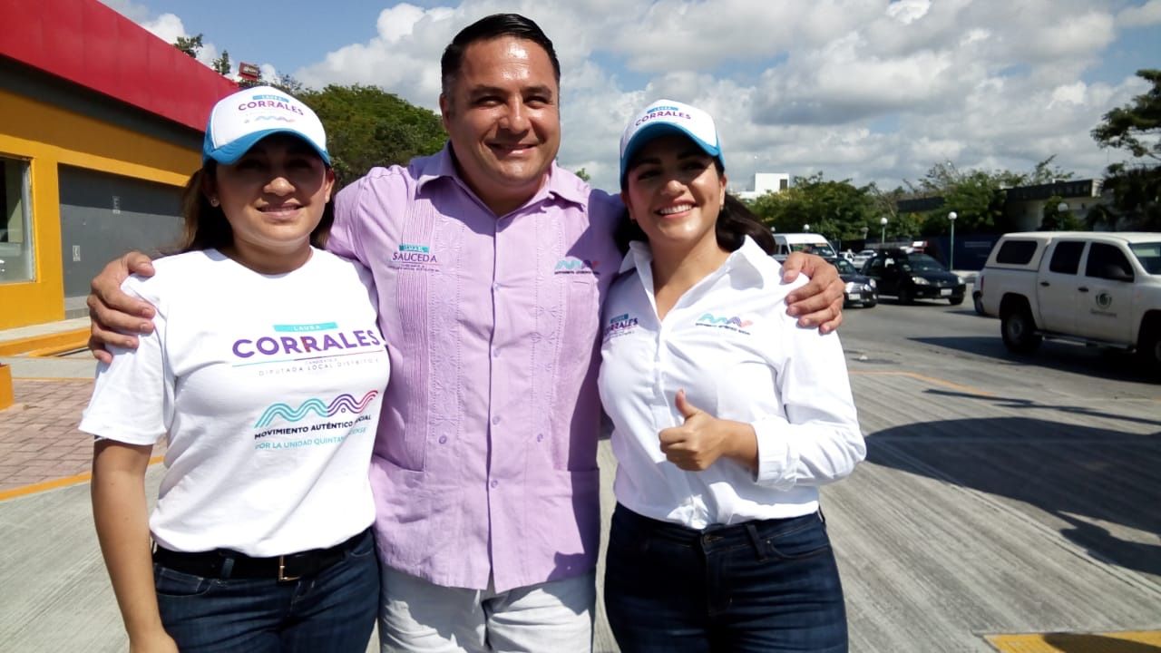 PLAYA DEL CARMEN, Quintana Roo, 24 de abril.- En el décimo día de campaña rumbo al Congreso el Estado por el Distrito 9, el candidato a diputado local del partido Movimiento Auténtico Social (MAS), Ismael Sauceda, y la abanderada por el Distrito 10, Laura Corrales, saludaron de manera conjunta a los peatones y automovilistas en el cruzamiento de la avenida CTM con avenida 115, la cual divide ambos distritos.