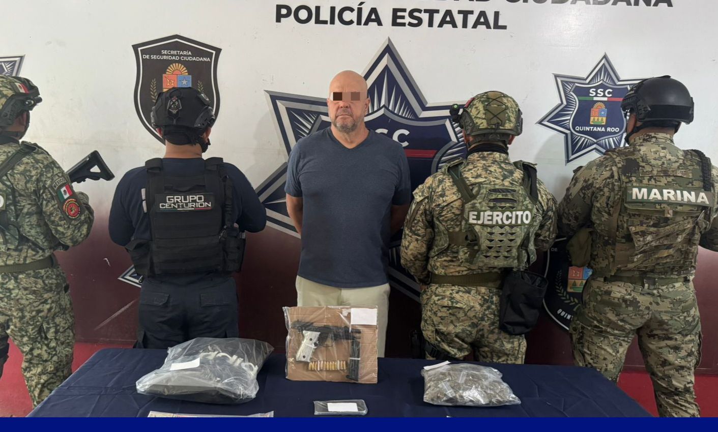 CANCÚN, 15 de enero de 2026.- Un hombre identificado como Remigio “N” fue detenido por fuerzas de seguridad durante un operativo de vigilancia en Cancún, al ser señalado como presunto responsable de delitos contra la salud y portación de arma de fuego de uso exclusivo del ejército.