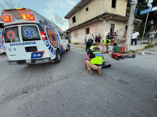 PLAYA DEL CARMEN, Quintana Roo, 11 de enero de 2026.– Dos personas resultaron lesionadas luego de que un camión repartidor de la empresa Bimbo no respetara su alto obligatorio y se impactara contra una motocicleta en la colonia Colosio, en Playa del Carmen.