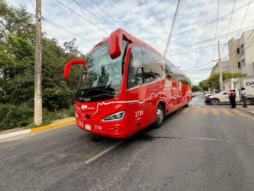 PLAYA DEL CARMEN, Quintana Roo, 6 de enero de 2026.— Un fuerte accidente vial se registró la tarde de este martes, luego de que el conductor de una camioneta que circulaba a exceso de velocidad impactara en un costado a un autobús de la empresa ADO, provocando severos daños materiales y el retraso de pasajeros que se dirigían al aeropuerto.