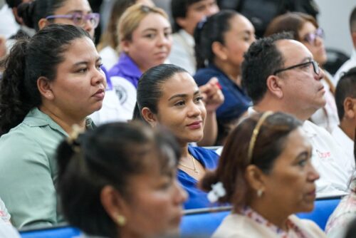 Al dirigirse a los asistentes, la gobernadora Mara Lezama destacó la importancia de esta capacitación, porque detrás de cada niña o niño hay una historia, una víctima de innumerables formas de coptarlo, engañarlo, de ser presa de los malos.