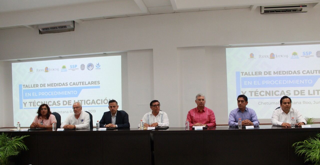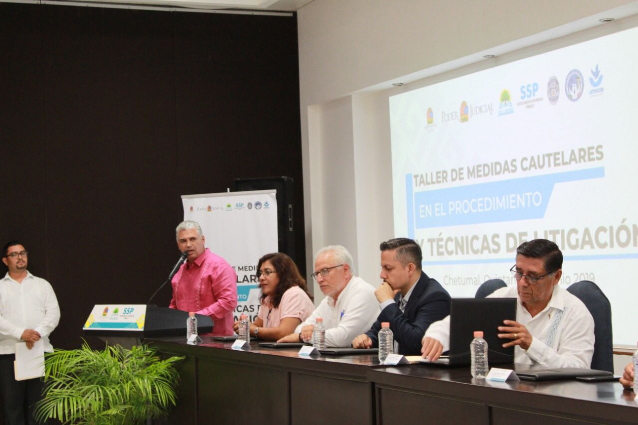 CHETUMAL, Quintana Roo, 1 de julio.- La Secretaría de Seguridad Publica, en la búsqueda de fortalecer el Sistema de Justicia Penal y en el ámbito de su competencia, a través de la Unidad de Medidas Cautelares del Estado de Quintana Roo (UMECAS), con la finalidad de seguir avanzando convocó a los actores intervinientes al curso de capacitación “Taller de Medidas Cautelares en el Procedimiento y Técnicas de Litigación”, impartido por uno de los juristas e investigadores de mayor renombre en el país el Dr. Javier Carrasco Solís, director del Instituto de Justicia Procesal Penal, que se llevó a cabo del 26 al 28 de junio del año en curso, en la Escuela Judicial de Chetumal.