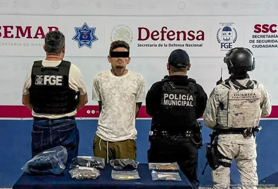 CANCÚN, Quintana Roo, 28 de febrero de 2026.- Personal de la Fiscalía General del Estado, en coordinación con la Guardia Nacional y la Secretaría Municipal de Seguridad Ciudadana y Tránsito, logró la captura en flagrancia de un masculino por su presunta participación en hechos probablemente constitutivos de delitos contra la salud, en su modalidad de narcomenudeo, en este municipio.