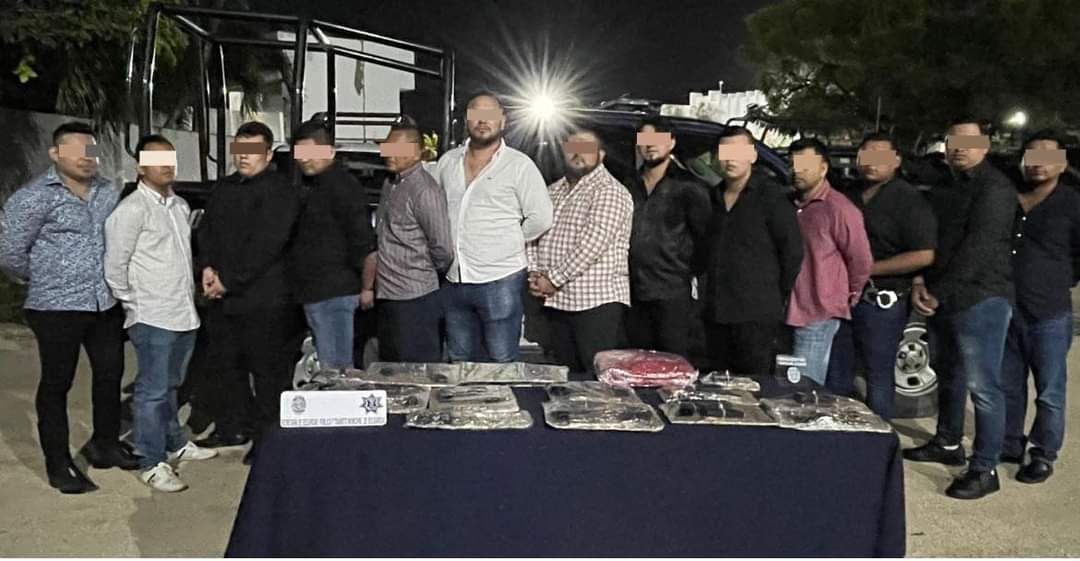 Cada una de estas 13 personas portaba un arma de fuego de calibres entre 9mm y .380, todas con los cargadores abastecidos, por lo que de inmediato los oficiales los detuvieron y trasladaron hasta las instalaciones de Seguridad Pública.