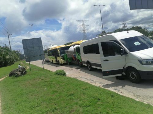 Cuatro de ellos eran unidades pesadas dos autobuses, una pipa repartidora de gas, además de una van de transporte turístico, también se vieron involucrados una camioneta y un vehículo.