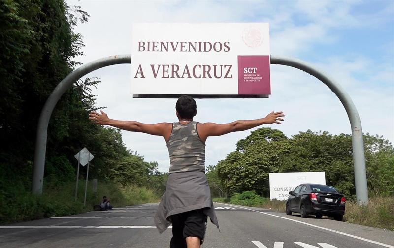“Hasta la vista Oaxaca, ¡adiós!”, exclamó un migrante alzando las manos en dirección hacia el arco que divide los dos estados y que dice “Bienvenidos a Veracruz”.
