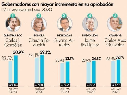Una encuesta de Mitofsky ubicó al gobernador de Quintana Roo en el primer lugar con mayor incremento en su aprobación. En el segundo lugar aparece Claudia Palovich, de Sonora, con el 52.1 %; tercero Silvano Aureoles, de Michoacán, con el 32.1%; cuarto Jaime Rodríguez, de Nuevo León, con el 34.8%, y quinto Carlos Aysa González, de Campeche, con el 39.1% de aprobación.