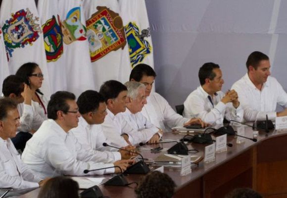 Reunidos en Huatulco los Gobernadores de las 32 entidades, así como los secretarios de Gobernación, Relaciones Exteriores y de la Función Pública, Miguel Osorio Chong, Claudia Ruiz Massieu y Arely Gómez González, respectivamente, sostuvieron una plenaria presidida por el gobernador del Estado de México, Eruviel Ávila y a la cual se sumó más tarde para escuchar sus planteamiento el Presidente de la República.