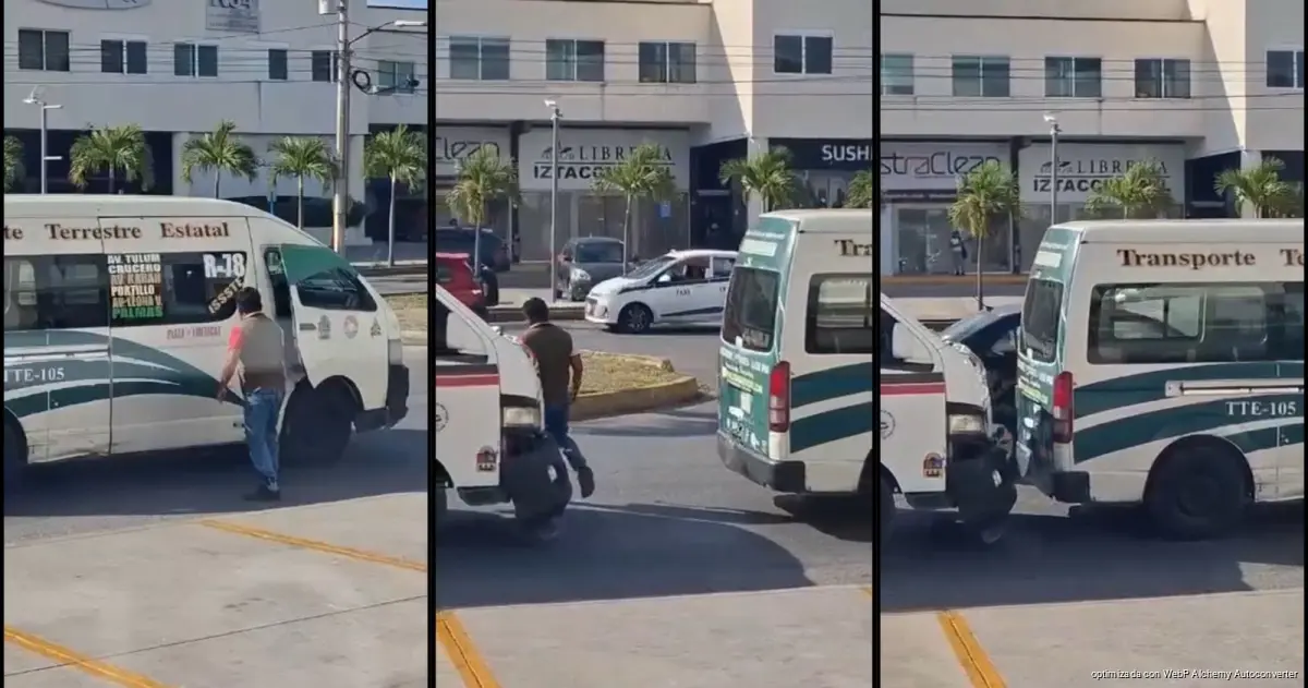 CANCÚN, Quintana Roo, 25 de abril de 2026.- Un conflicto entre operadores del transporte público quedó evidenciado en redes sociales luego de que se viralizara un video donde dos conductores protagonizan una riña en plena vía pública, sin importar la presencia de usuarios a bordo.
