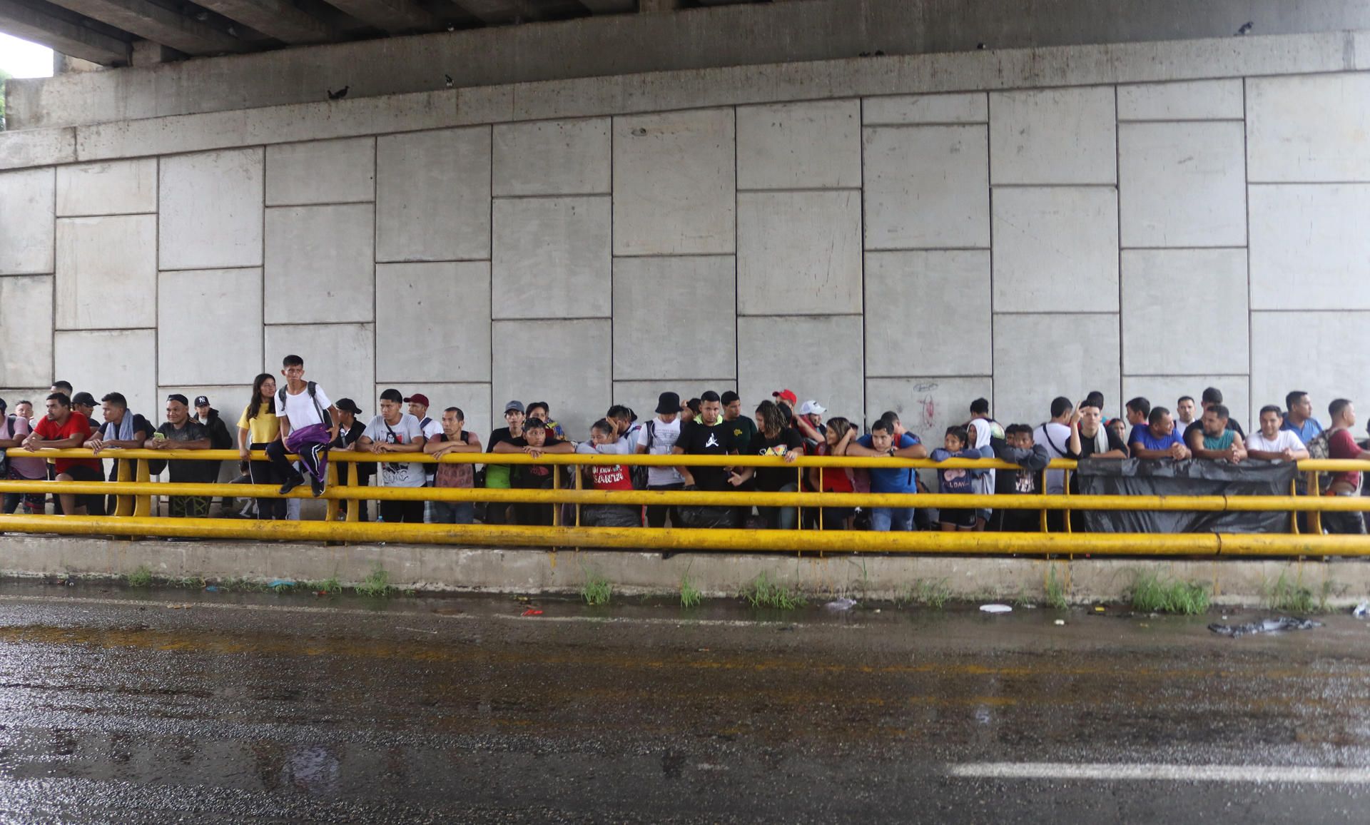 Mikel José Sánchez, venezolano que viaja con su esposa y dos niños, relató que no cuentan un techo o un lugar donde cubrirse de las lluvias registradas los últimos días, pero se mojan para esperar que les brinden la atención.