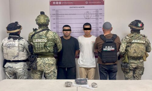 En otra acción, en la Supermanzana 210 de Cancún, los agentes localizaron un arma de fuego tipo pistola, hierba verde seca y sustancias sólidas de distintos tipos. Durante esta intervención fueron detenidos Alexis Antonio “N” y Pedro Fortuno “N”, presuntamente ligados a un grupo delincuencial que opera en el estado.