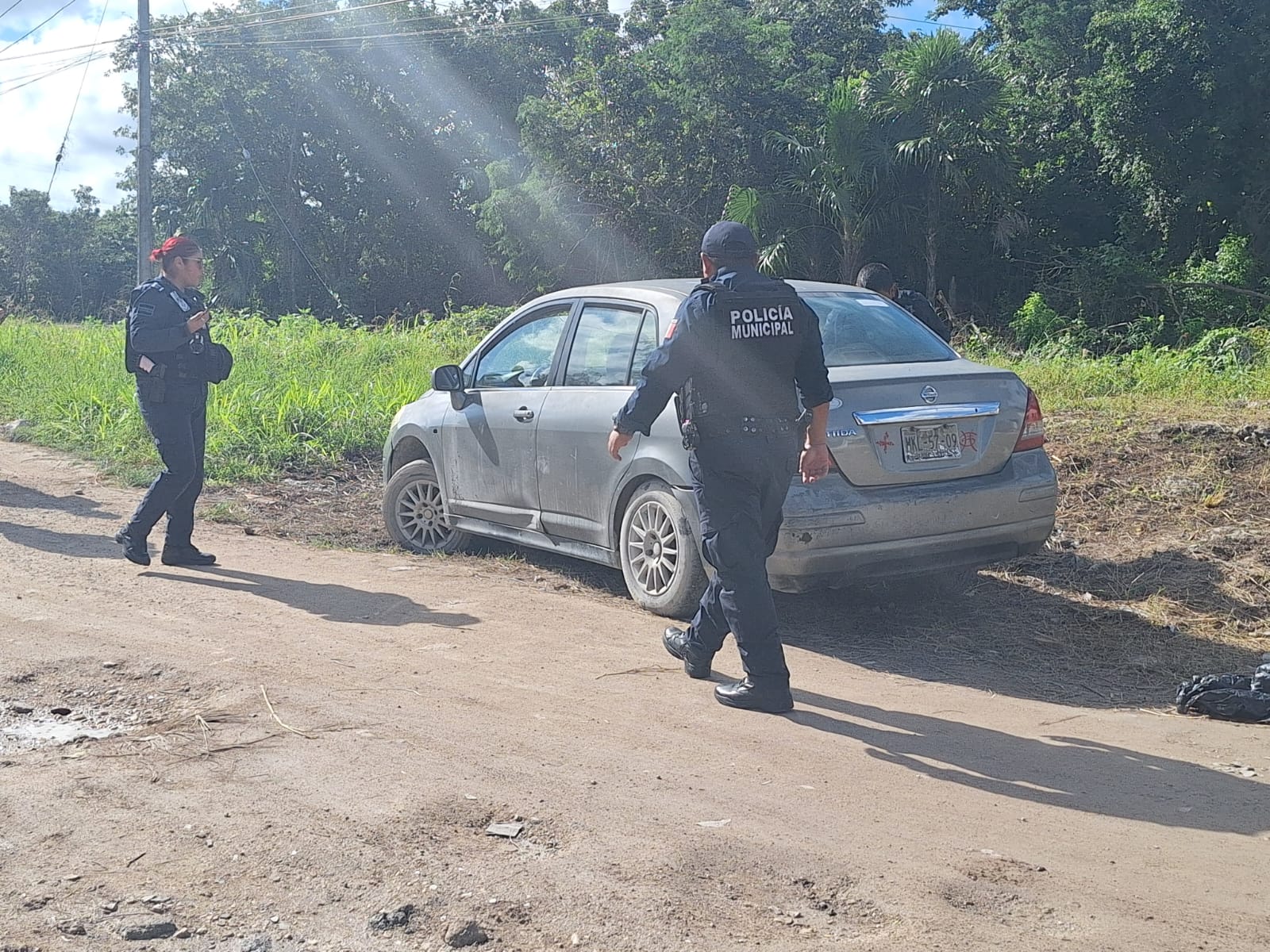 Cancún, Quintana Roo, 7 de diciembre de 2025. Genera preocupación entre vecinos de la colonia Yaxché, en la Región 205, la presencia de un automóvil aparentemente abandonado en un camino de terracería, el cual permaneció por varias horas con daños visibles y objetos inusuales en su interior.