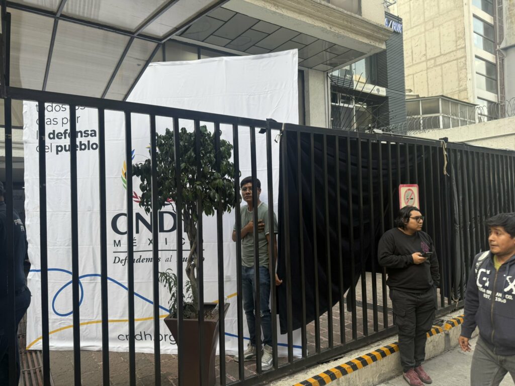 No nos querían permitir el ingreso a la Comisión Nacional de los Derechos Humanos, que pese a identificarnos previamente con respeto, nos negaron la entrada. Tuvimos que ingresar sin violencia pero fuimos recibidos a golpes ante la vista de quienes deberían defendernos”, manifestó Flores en redes sociales.