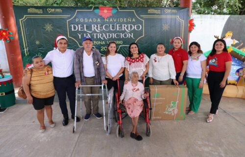 Leona Vicario, Puerto Morelos, Quintana Roo, 9 de diciembre de 2025.— La presidenta municipal Blanca Merari Tziu Muñoz puso hoy en marcha los festejos navideños en el municipio con la Posada Navidad del Recuerdo y la Tradición, dedicada a las personas que asisten a la Casa del Adulto Mayor “Maestra Maura Cordero Silva”, de esta delegación.