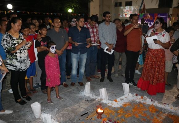 La ofrenda de muertos es un elemento fundamental en el conjunto de tradiciones mexicanas del Día de Muertos que consiste en instalar altares domésticos en honor a los difuntos de la familia donde se brinda como ofrenda alimentos, velas, flores, para homenajear a los seres queridos que se encuentran del “otro lado”, para ello al finalizar la colocación de las ofrendas, se realizó un recorrido por los seis altares explicando a los jueces los elementos qué ocuparon en sus altares y su significado.