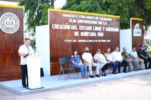 PLAYA DEL CARMEN, Quintana Roo, 8  de octubre.- El Gobierno de Solidaridad, encabezado por la Presidenta Municipal, Cristina Torres Gómez, rindió homenaje a los fundadores del Estado de Quintana Roo durante el LXIII Aniversario de la Creación de la entidad.