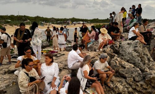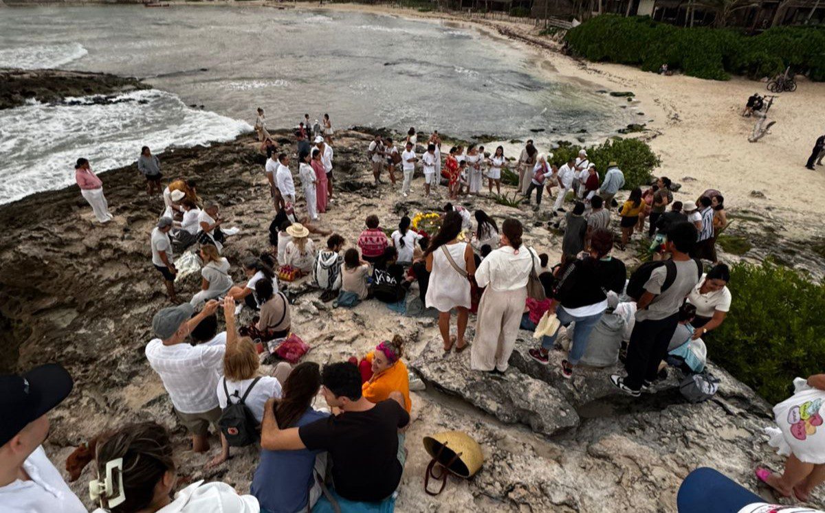 La ceremonia marcó de manera simbólica el cierre y el inicio de un ciclo con la llegada de los primeros rayos del sol de invierno, en honor a la cosmovisión maya y al término del ciclo agrícola anual. Vestidos de blanco y tonos beige, los asistentes participaron en rituales guiados por canoistas, a través de cantos y rezos ancestrales que representaron la relación sagrada entre el ser humano, la tierra y el sol.