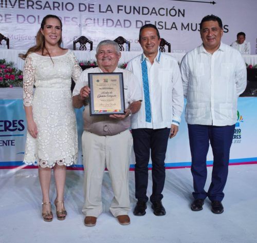 Invitado por la presidenta Gómez Ricalde y acompañado por el magistrado Mario Alberto Aguilar, representante del Tribunal Superior de Justicia del Estado, y del diputado Eduardo Martínez Arcilla, presidente de la Junta de Gobierno y Coordinación Política de la XVI Legislatura, Carlos Joaquín participó en la entrega de reconocimientos a familias fundadoras de la isla.