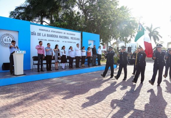 PLAYA DEL CARMEN, Quintana Roo, 24 de febrero.- La Presidenta Municipal de Solidaridad, Cristina Torres Gómez, hizo un llamado a los solidarenses a hacer patria a través de la paz, durante su discurso en el marco de la conmemoración del Día de la Bandera Nacional Mexicana.