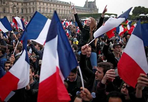 Agitando banderas de Francia y de la Unión Europea (UE) los seguidores de Macron estallaron en gritos de alegría al conocerse el resultado, a las 20:00 horas locales.