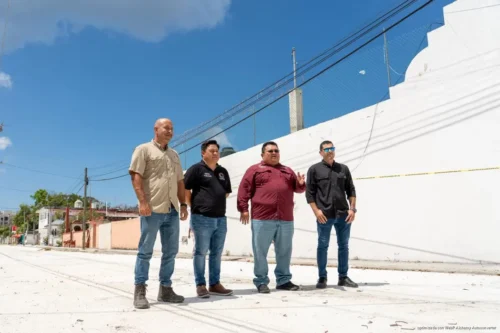 Cozumel, 30 de marzo del 2026. – Al dar un recorrido por la obra de pavimentación con concreto hidráulico que se realiza en la 2 Norte entre las avenidas 25 y 30, el presidente municipal José Luis Chacón Méndez anunció que esta vía ya puede ser utilizada como paso peatonal por la comunidad.