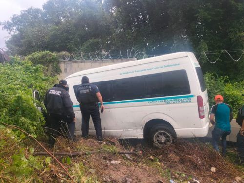PLAYA DEL CARMEN, Quintana Roo, 10 de febrero.- Conductor de una van de servicio público, que circulaba sobre la carretera federal en dirección a Tulum, perdió el control debido al pavimento mojado y el exceso de velocidad.