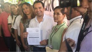 CANCÚN, Quintana Roo,08 de abril 2018.- José Luis ‘Chanito’ Toledo Medina solicitó su registró ante el Instituto Electoral de Quintana Roo (Ieqroo) como candidato de la coalición ‘Por Quintana Roo al Frente’, de PRD, PAN y Movimiento Ciudadano (MC).