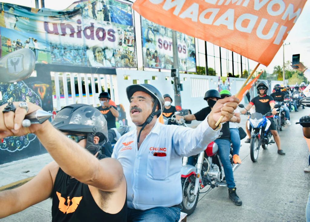 PLAYA DEL CARMEN, Quintana Roo, 18 de mayo. – Mas de 150 motociclistas le armaron una rodada al candidato de Movimiento Ciudadano, a la presidencia municipal de Solidaridad, Marciano “Chano” Toledo Sánchez, la ciudadanía salió de sus casas para expresarle su apoyo.