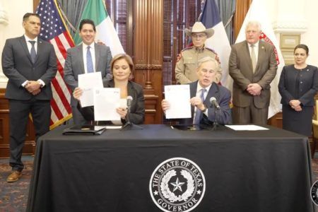 La gobernadora de Chihuahua, Maru Campos, y su homólogo de Texas, Greg Abbott, firmaron este jueves un acuerdo para suspender la inspección de los tráileres que ingresan a territorio texano por la frontera de dicha entidad de la República Mexicana.