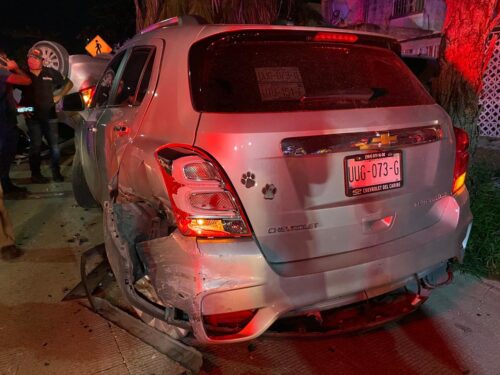 El accidente ocurrió esta noche en la avenida 115, cerca de la avenida Colosio, cuando un Shift a exceso de velocidad se estrelló por detrás contra un coche mal estacionado.