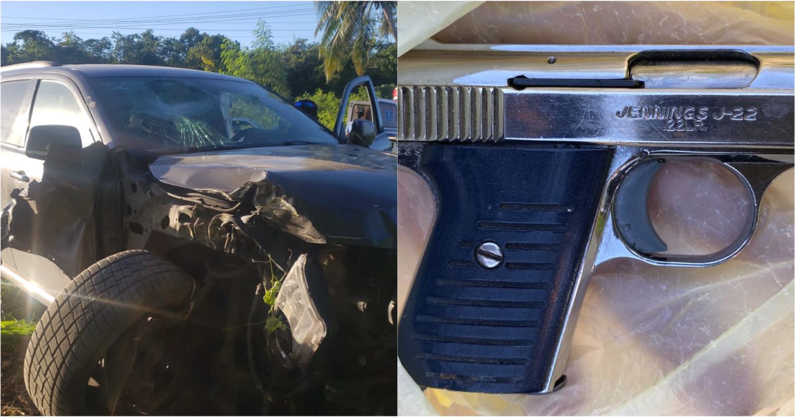 PLAYA DEL CARMEN, Quintana Roo, 26 de diciembre. – Policías de la Secretaría de Seguridad Pública y Tránsito Municipal de Solidaridad aseguraron a un sujeto en posesión de un arma de fuego, mismo que estuvo involucrado en un accidente de vial sobre la carretera federal.
