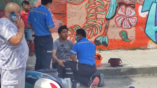 Ciudadanos que observaron el percance solicitaron la intervención de una unidad médica a través de la línea de emergencia 911 arribando al lugar para médicos de una empresa privada quiénes valoraron al joven el cual presentaba lesiones en la cara debido a que impacto de frente contra la parte trasera de la camioneta.