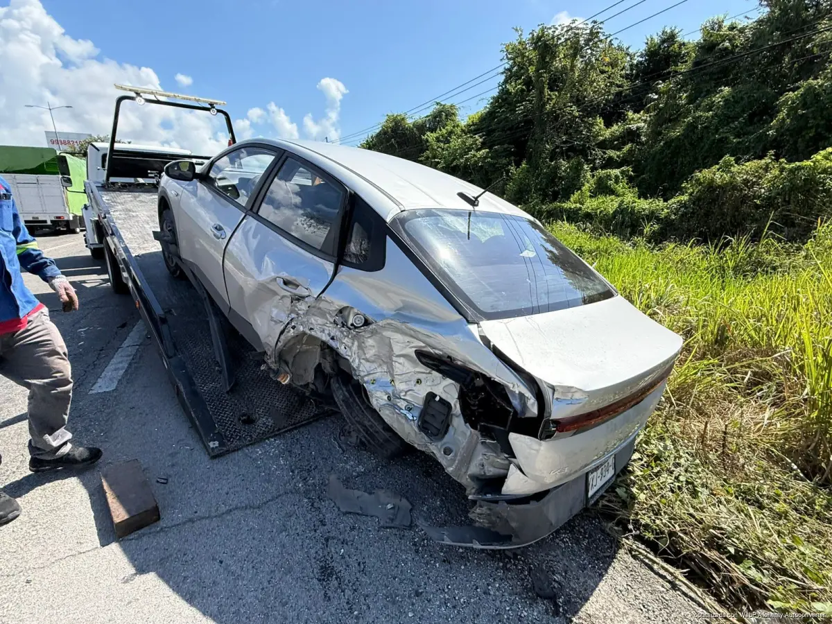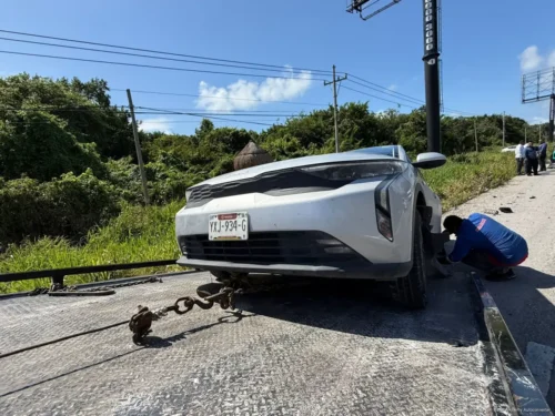 PLAYA DEL CARMEN, Quintana Roo, 11 de abril de 2026.- Un fuerte accidente vial se registró sobre la carretera federal, a la altura del complejo hotelero Vidanta, luego de que un taxi impactara por alcance a un vehículo particular, provocando que ambas unidades terminaran fuera de la vía.