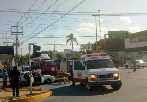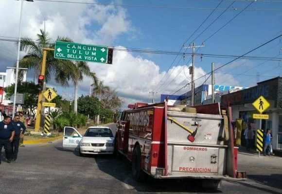 PLAYA DEL CARMEN, Quintana Roo, 7 de abril.- Una persona resultó lesionada, luego de que el taxi donde viajaba chocará contra un camión de emergencias del cuerpo de bomberos, el cual se dirigía a cubrir un incendio en la colonia bellavista.
