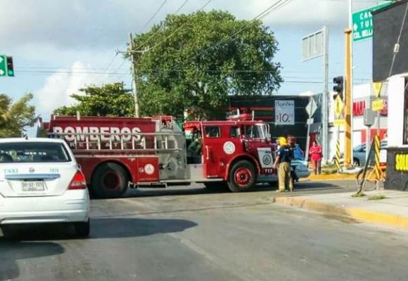 PLAYA DEL CARMEN, Quintana Roo, 7 de abril.- Una persona resultó lesionada, luego de que el taxi donde viajaba chocará contra un camión de emergencias del cuerpo de  bomberos, el cual se dirigía a cubrir un incendio en la colonia bellavista.