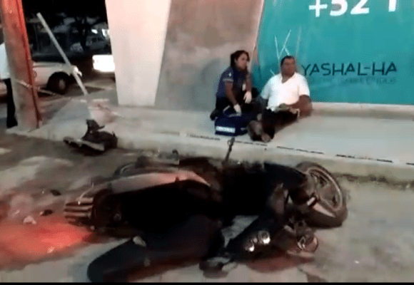 La motoneta de color gris era conducida sobre la avenida 38 con dirección al poniente, cuando terminó de frente contra el vértice derecho del taxi local, por lo que el conductor resultó lesionado, sin embargo fue trasladado a un hospital privado, a través del ajustador de seguros.