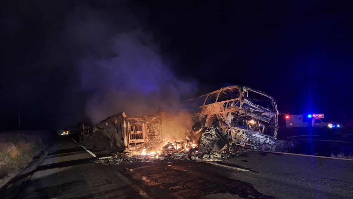 Un autobús de pasajeros chocó contra un tráiler sobre la Maxipista Culiacán-Mazatlán, incidente tras el cual se incendiaron ambas unidades