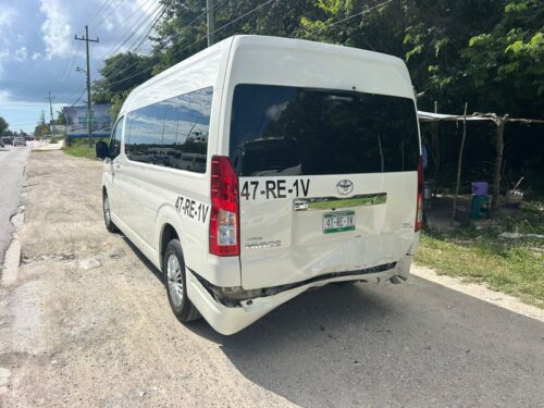 El accidente ocurrió alrededor de las 12:30 del día, cuando el conductor de una van Toyota Hiace, color blanco, disminuyó la velocidad al llegar al reductor ubicado antes de la avenida Xel Ha. Detrás de él circulaba un Nissan March color naranja, cuyo conductor también se detuvo con la distancia necesaria.