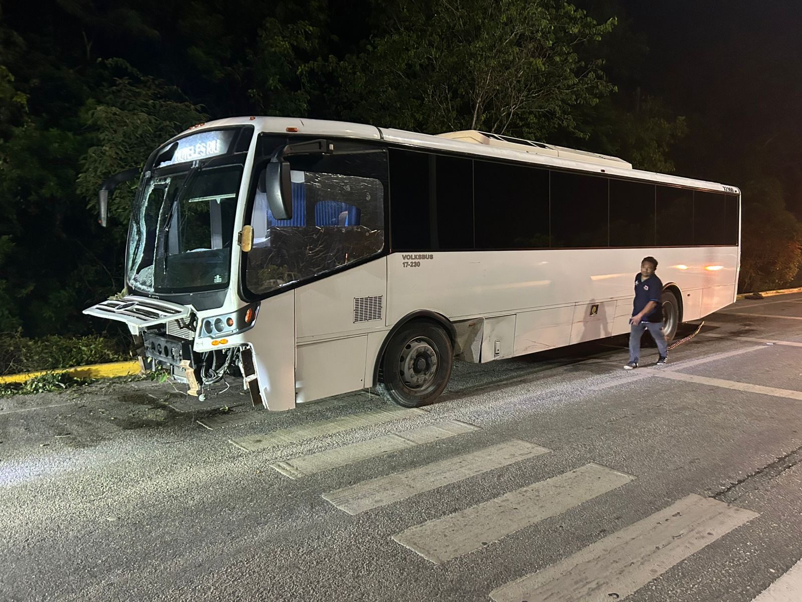 El hecho ocurrió alrededor de las 11:00 de la noche, cuando el autobús circulaba en dirección a Playa del Carmen. Repentinamente, el conductor se desvió hacia su costado derecho, saliendo de la cinta asfáltica y terminando detenido entre la maleza tras un fuerte impacto.