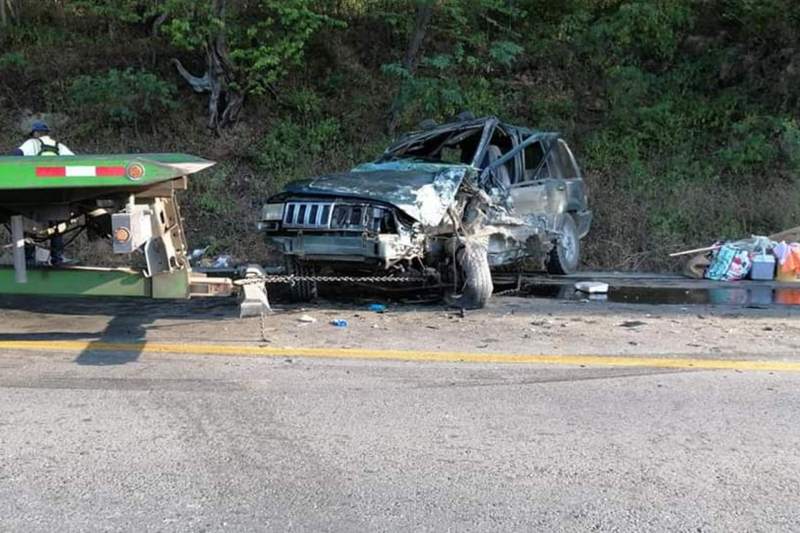 En Zihuatanejo, en el estado de Guerrero, dos camionetas chocaron de frente y volcaron en las curvas de la Loma del Toro, en la carretera federal Acapulco-Zihuatanejo, hecho que dejó cuatro personas lesionadas.